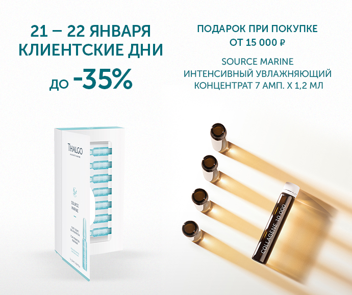 Приглашаем вас насладиться морским путешествием в мир красоты и гармонии вместе с брендом Thalgo! С 21 по 22 января интернет-магазин Thalgo проводит клиентские дни, предлагая особые условия для своих покупателей. Это отличная возможность приобрести качественные и проверенные средства по уходу за кожей по сниженной цене и получить приятный подарок в придачу.