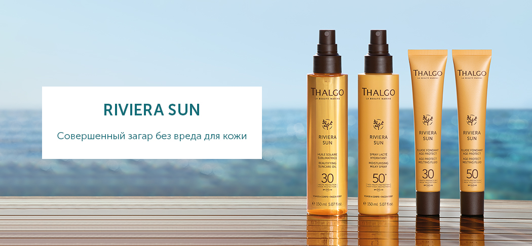 Thalgo Riviera Sun — это линия солнцезащитных средств, созданных с учётом потребностей разных типов кожи. Они обеспечивают надёжную защиту от UVA и UVB лучей, предотвращают обезвоживание и появление пигментных пятен, а также способствуют ровному и стойкому загару.