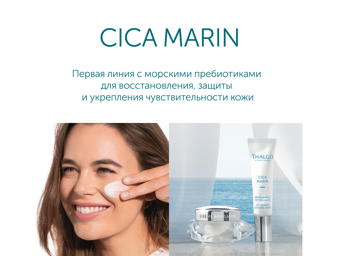Линия Cica Marin от Thalgo — это первая восстанавливающая линия с морскими пребиотиками, которая способствует восстановлению, защите и укреплению чувствительной кожи, а также снижению её реактивности.