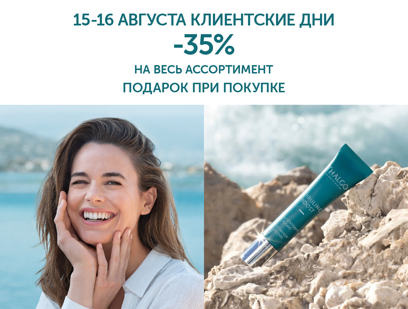 С 15 по 16 августа в интернет-магазине Thalgo пройдут клиентские дни! Это отличная возможность приобрести любимые товары со скидкой -35 %.