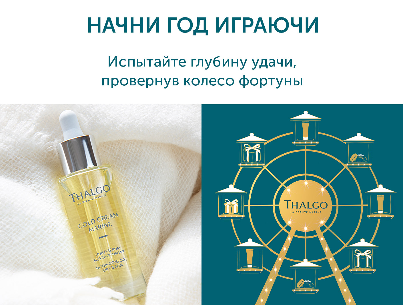 Испытайте удачу, покрутив колесо фортуны, и выиграйте дополнительную скидку на весь ассортимент в нашем интернет-магазине. Загадайте желание и переходите на сайт бренда Thalgo, чтобы погрузиться в мир удачи и побаловать себя!