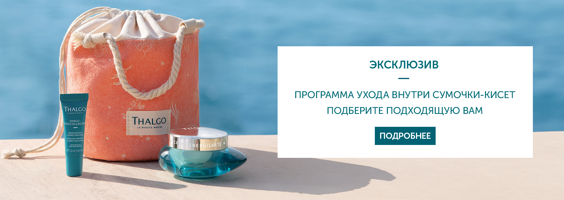 - Широкий ассортимент: у нас вы найдёте не только программы ухода в сумочках-кисётах, но и другие косметические средства от Thalgo.
