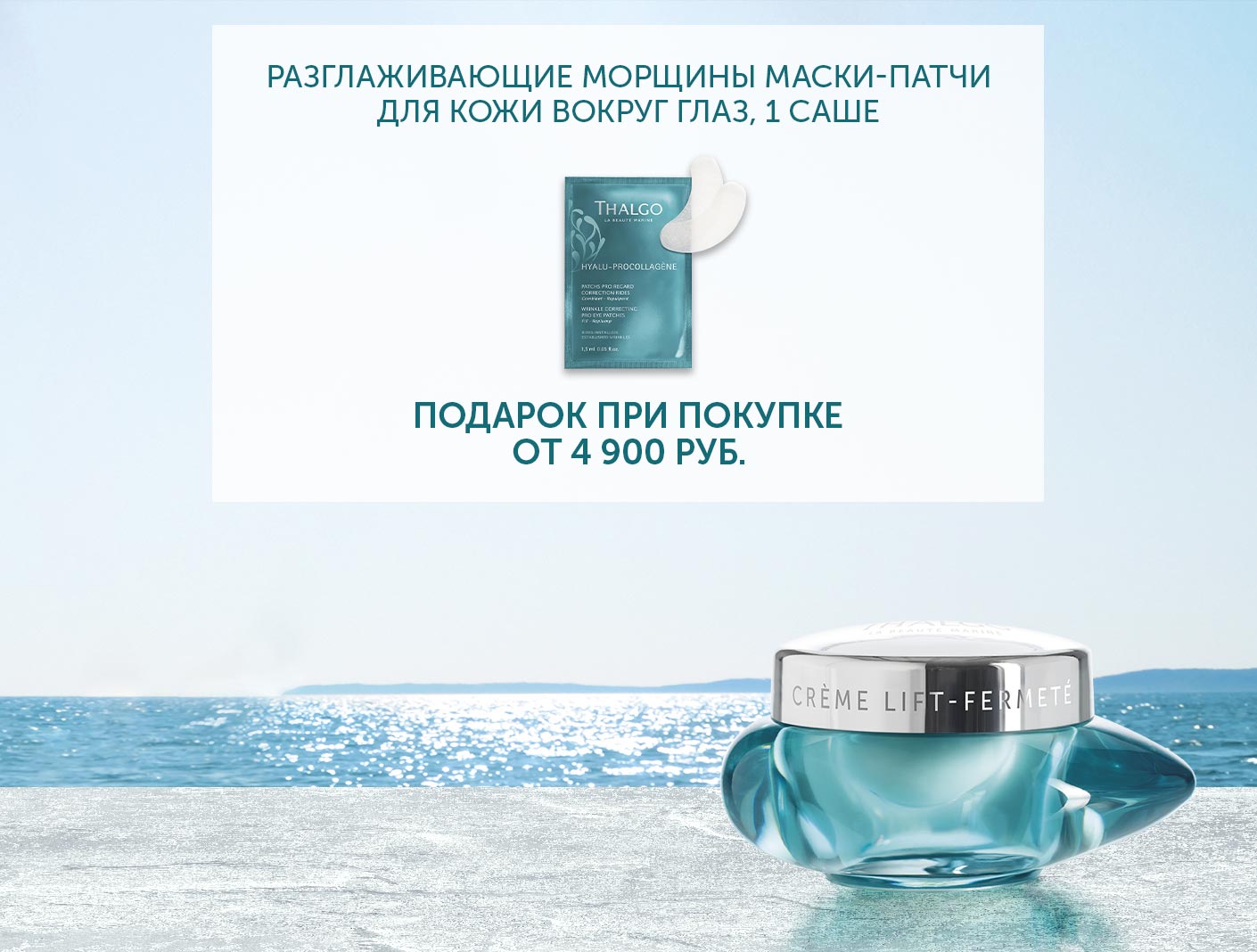 Только в декабре оформи заказ в официальном интернет магазине Thalgo.ru на сумму 4900 руб и получи в подарок HYALU-PROCOLLAGNE Разглаживающие Морщины Маски-патчи для Кожи Вокруг Глаз 1 саше