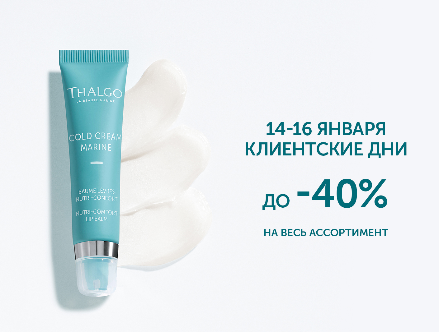 С 14 по 16 января в официальном интернет-магазине Thalgo проводятся клиентские дни. Всем покупателям предоставляется скидка −40% на весь ассортимент товаров.