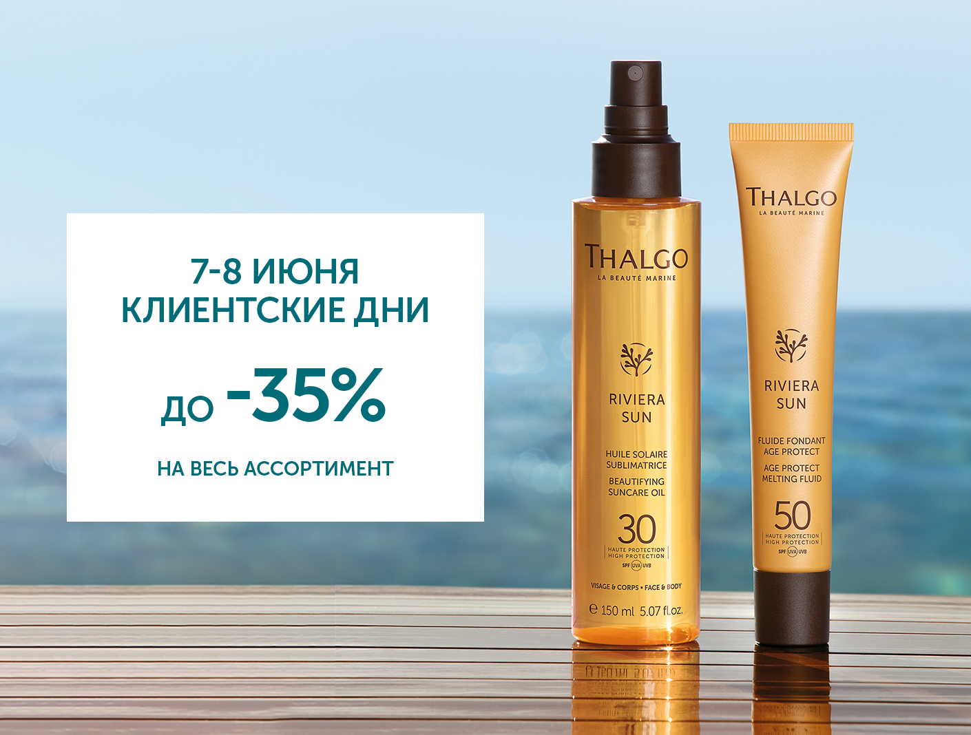 Мы рады сообщить вам о предстоящих клиентских днях в нашем интернет-магазине французского бренда Thalgo. С 7 по 8 июня мы предлагаем вам уникальную возможность приобрести продукцию со скидкой 35% на всё!