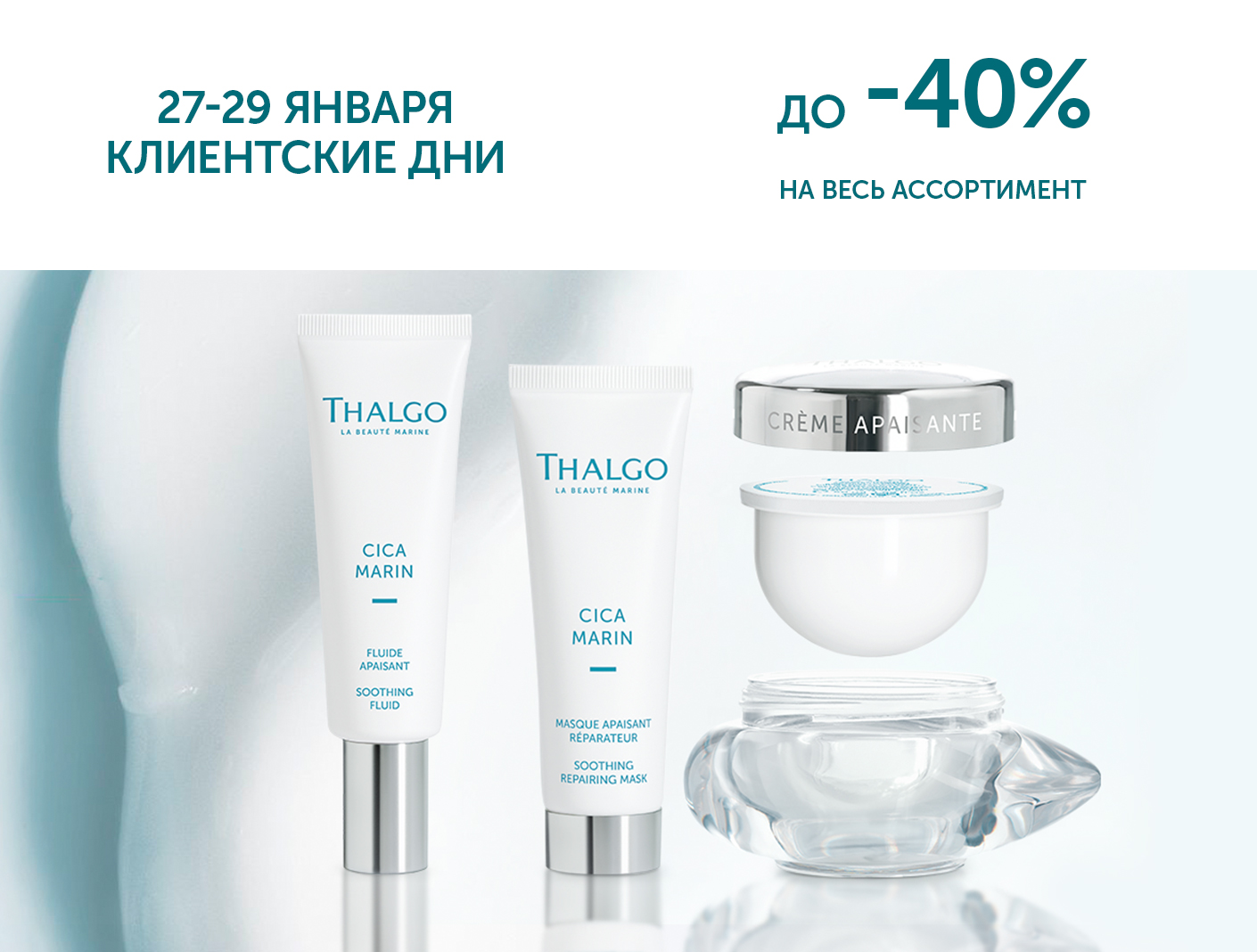 С 27 по 29 января в официальном интернет-магазине Thalgo проводятся клиентские дни. У вас есть уникальная возможность приобрести любимые средства французского бренда со скидкой −40%!